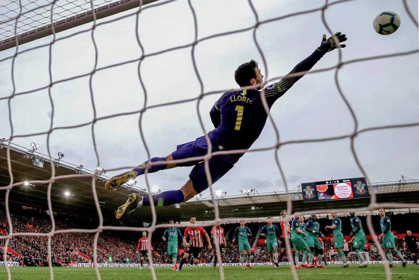 4. Уго Льорис отчаянно пытается спасти "Тоттенхэм" от гола со штрафного в исполнении Уорда-Прауза.