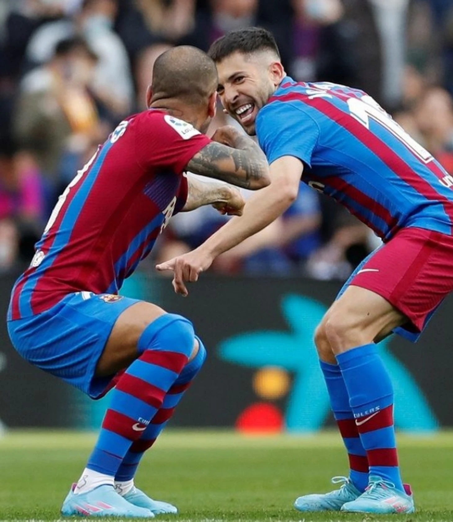 Алвес ныряет в центр, отдавая всю бровку Адама Траоре. Бедный Эрмосо должен был что-то с ним сделать..