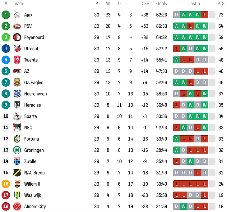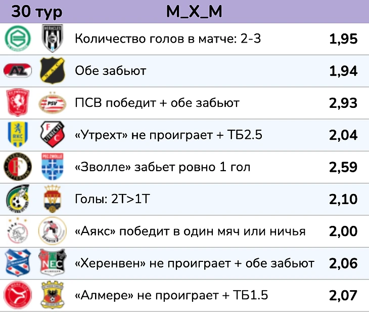 Превью 30-го тура Эредивизи 🇳🇱 | «Твенте» и ПСВ выдадут голевую игру, «Аяксу» будет сложно против бывшего тренера ⚔️