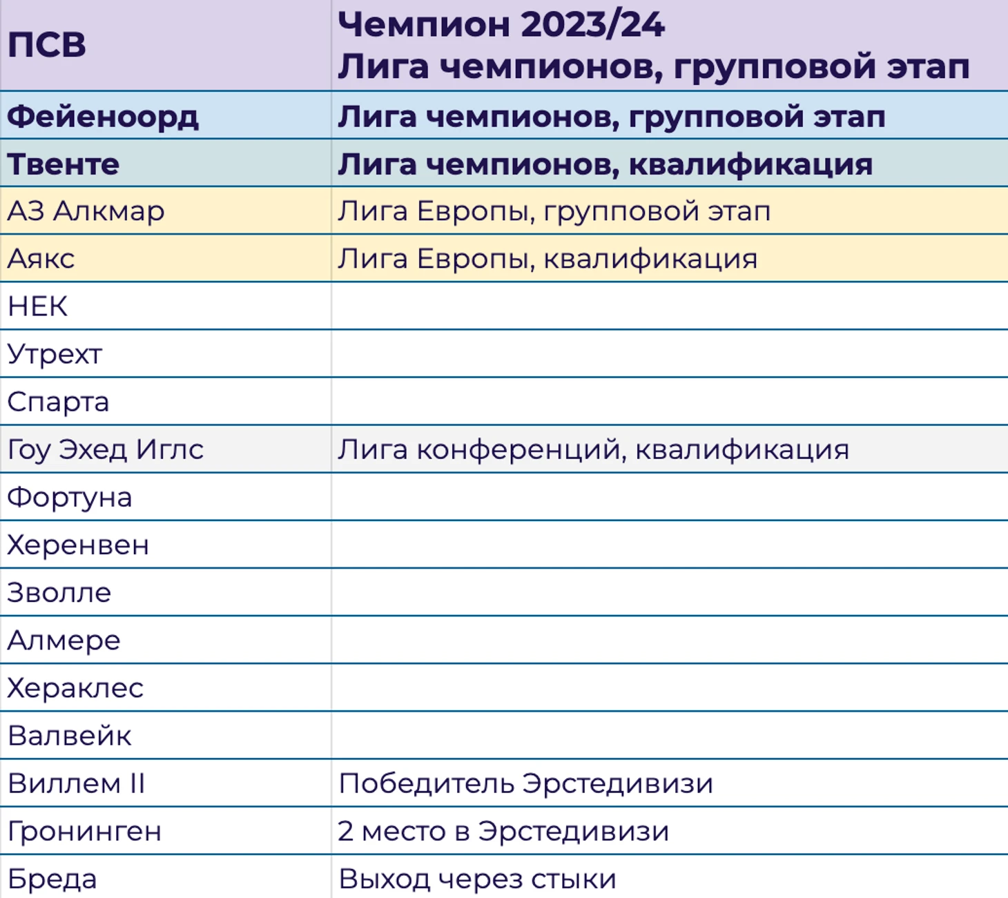 В Эредивизи закончились все мероприятия по определению состава участников на сезон 24/25: