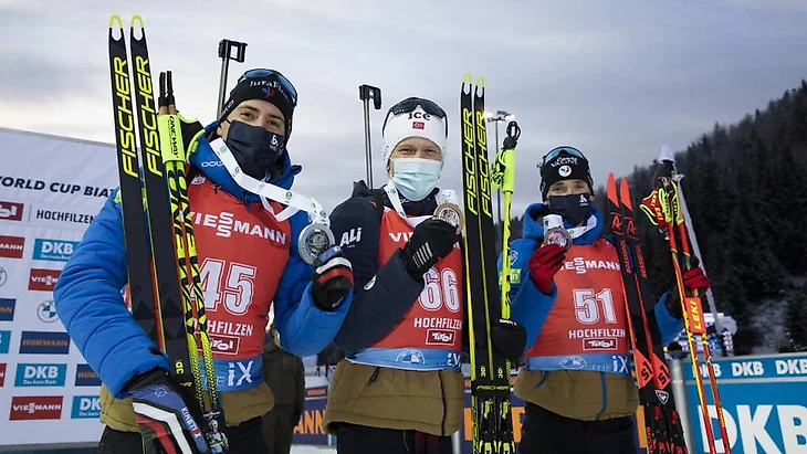 Обладатель желтого биба Йоханнес Тиннес Бё, допустивший один промах, занял четвертое место с отставанием на 41,2 секунды. Себастьян Самуэльссон из Швеции стрелял чисто и финишировал пятым, с отставанием на 44,3 секунды. Французу Эмильену Жаклену досталось шестое место, он допустил два промаха и отстал на 45,7 секунды. Таким образом, трое французов оказалось в первой шестерке.