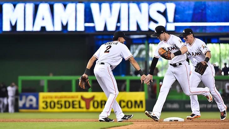 "Майами Марлинс"-"Филадельфия Филлис" 10:5.В 5 иннинге хозяева набрали 8 очков и уже не отдали победу.В 4 иннинге Сезар Эрнандес выбил трипл (2),а Майкел Франко со Скоттом Кингери и Эндрю Кнаппом увеличили преимущество гостей.В 5 иннинге Кэмерон Майбин выбил хоум-ран (2) и хозяева размочили счёт в матче.Затем Брайан Андерсон выбил хоум-ран (8),а Джастин Бур и Дерек Дитрих забежали в дом.После этого Мигель Рохас выбил сингл,а Джей-Ти Реалмуто и Старлин Кастро вывели уже хозяев вперёд.Далее Джастин Бур выбил сингл и Мартин Прадо с Мигелем Рохасом увеличили отрыв хозяев.В 8 иннинге Дерек Дитрих принёс хозяевам ещё одно очко после неразберихи  в защите гостей.Реливер хозяев Элисер Эрнандес (2-5) заработал 6 страйков и один флай-аут.