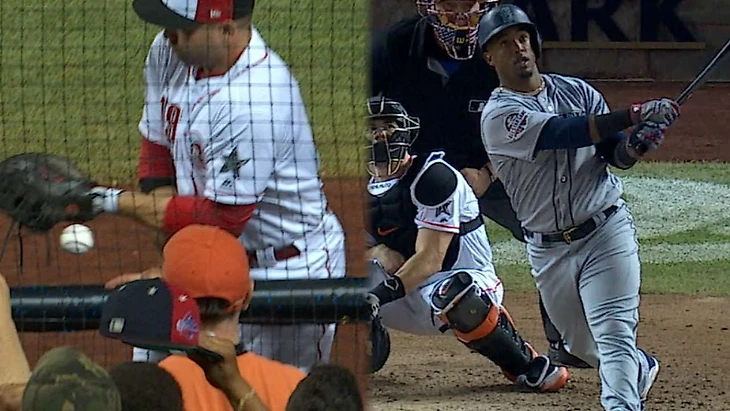 "Национальная Лига"-"Американская Лига" 6:8."Американцы" лишь в дополнительном иннинге смогли вырвать победу.Во 2 иннинге Аарон Юдже выбил хоум-ран и открыл счёт в матче.В 3 иннинге своим хоум-раном увеличил преимущество "американцев".И х соперники ответили хоум-раном Уилсона Контрераса.В 7 иннинге Тревор Стори выбил хоум-ран и сравнял счёт в матче.В 8 иннинге Жан Сегура своим хоум-раном отправил в дом Джорджа Спрингера и Шина Су Чу,тем самым "американцы" снова вышли вперёд.На что их соперники ответили хоум-раном Кристиана Йелича.В 9 иннинге Скутер Дженнет своим хоум-раном отправил Джей-Ти Реалмуто в дом и счёт снова стал равным.В 10 иннинге Алекс Брегман своим хоум-раном снова вывел "американцев" вперёд.Затем Джордж Спрингер выбил хоум-ран.И х соперники ответили лишь хоум-раном Джои Вотто.Реливер "американцев" Эдвин Диас заработал 12 страйков и один флай-аут.