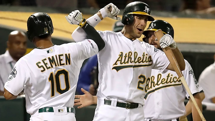"Окленд Атлетикс"-"Техас Рейнджерс" 12:3.В первом иннинге хозяева набрали сразу 7 очков и держали нити игры в своих руках.Мэтт Олсон выбил сингл и Маркус Семьен вывел хозяев вперёд.После аута Марка Каньи Мэтт Олсон успел прибежать в дом.Затем Рамон Лауреано выбил дабл (29) и Марк Канья прибежал в дом.После аута Шелдона Нойса Рамон Лауреано увеличил отрыв хозяев.Далее Джош Фегли выбил сингл и Крис Дэвис прибежал в дом.После этого Мэтт Чапман выбил сингл,а Чад Пиндер и Джош Фегли принесли хозяевам ещё два очка.Во втором иннинге Шелдон Нойс выбил сингл и Марк Канья прибежал в дом.После ошибки питчера гостей Рамон Лауреано прибежал в дом.В 5 иннинге Маркус Семьен выбил хоум-ран (32).Затем Марк Канья выбил хоум-ран (26).В 6 иннинге Элвис Андрус выббил хоум-ран (11).Затем Данни Сантана выбил хоум-ран (26).В 8 иннинге Ник Солак выбил хоум-ран (5).Хозяева ответили синглом Джоша Фегли и забеганием Чада Пиндера.Питчер хозяев Шон Манаи (3-0) сделал 4 страйк-аута,заработал 6 гранд-аутов и 3 флай-аута.