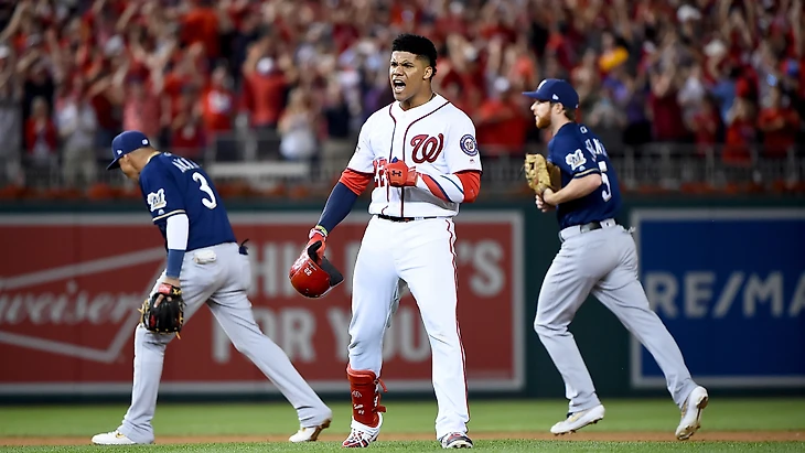 "Вашингтон Нэшнлз"-"Милуоки Брюэрс" 4:3.В первом иннинге Ясмани Грандал своим хоум-раном (1) отправил Трента Гришэма в дом.Во втором иннинге Эрик Тэймс выбил хоум-ран (1).В 3 иннинге Тре Тёрнер выбил хоум-ран (1).В 8 иннинге Хуан Сото выбил сингл,а Майкл Тэйлор с Эндрю Стивенсоном и Энтони Рендоном принесли победу хозяевам.Реливер хозяев Стефен Страсбург (1-0) сделал 4 страйк-аута,заработал 4 гранд-аута.