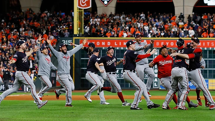 "Хьюстон Астрос"-"Вашингон Нэшнлз" 2:6.Во втором иннинге Юли Гурриэль выбил хоум-ран (1).В 5 иннинге после видеопросмотра установили,что Карлос Корреа вымил сингл и Юли Гурриэль прибежал в дом.В 7 иннинге Энтони Рендон выбил хоум-ран (2),Затем Хоуи Кендрик своим хоум-раном (1) отправил Хуана Сото в дом.В 8 иннинге Хуан Сото выбил сингл и Адам Итон увеличил отрыв гостей.В 9 иннинге Адам Итон выбил сингл.а Ян Гомес и Виктор Роблес установили окончательный результат.Реливер гостей Патрик Корбин (2-3) сделал 3 страйк-аута и заработал 4 гранд-аута."Граждане" выиграли серию 4-3.