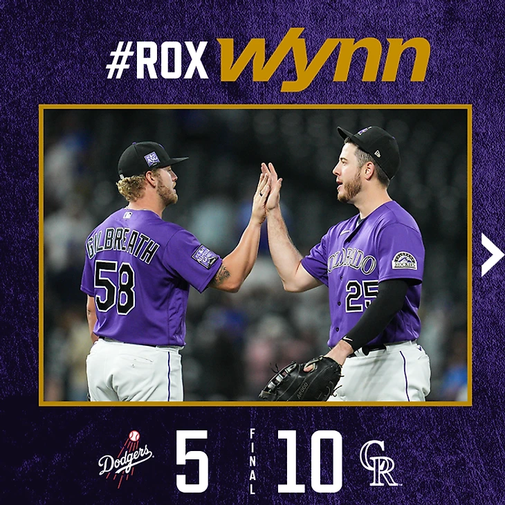 "Колорадо Рокиз" (71-80) -"Лос-Анджелес Доджерс" (97-55) 10:5.Хозяева в 4 иннинге набрали 5 очков.