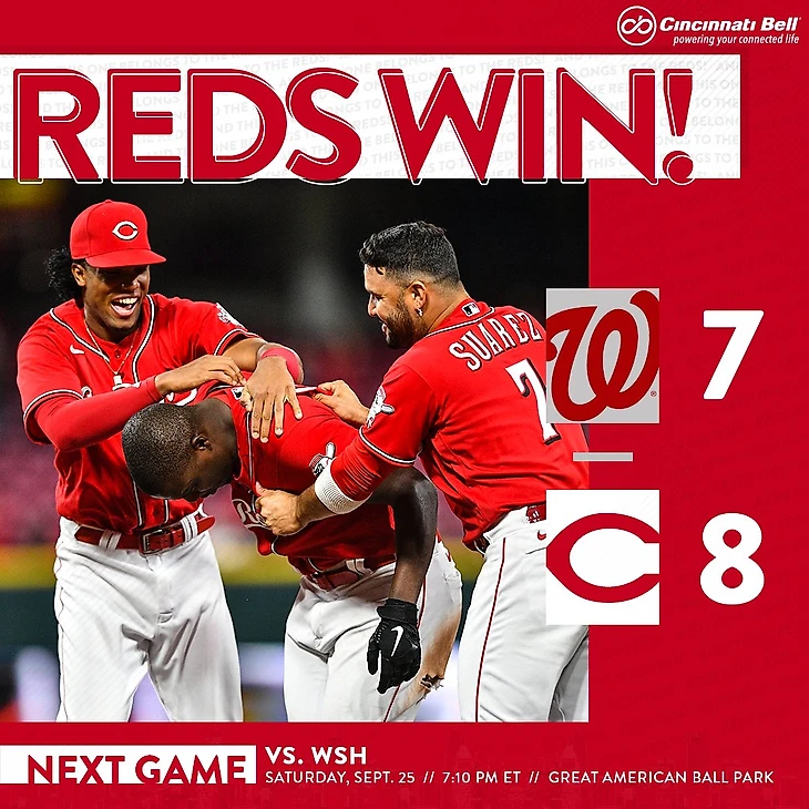 "Цинциннати Редс" (79-75) -"Вашингтон Нэшнлз" (64-90) 8:7.