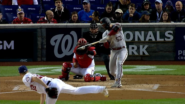 В 3 иннинге Кристиан Уокер выбил сингл и Кетел Марте прибежал в дом.Затем Сет Бир выбил сингл и Давид Перальта прибежал в дом.После аута Павина Смита Кристиан Уоке успел прибежать в дом.