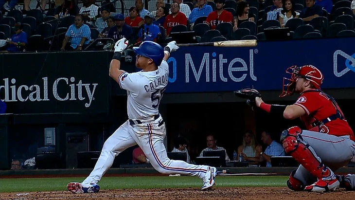В 4 иннинге Коул Калхун своим хоум-раном (4) отправил Адолиса Гарсию в дом и сравнял счёт в матче.