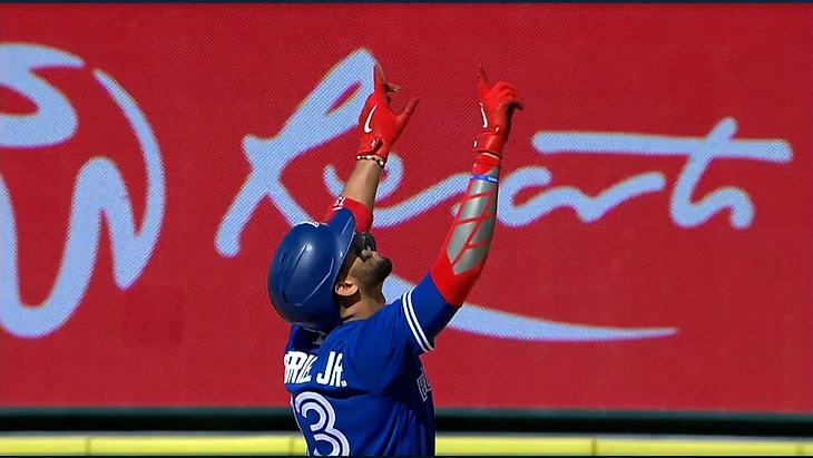 В 8 иннинге Бо Бичетт выбил хоум-ран (7) и сравнял счёт в матче.Затем Лурдес Гурриэль выбил дабл (11) и Алехандро Кирк приносит победу гостям.