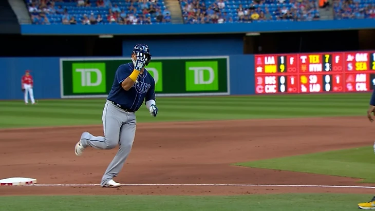 В 3 иннинге после гранд-аута Рэнди Арозарены Вандер Франко успел прибежать в дом.Затем Исаак Паредес выбил дабл (6) и Харольд Рамирес прибежал в дом.Далее Тэйлор Уоллс выбил сингл и Исаак Паредес прибежал в дом.