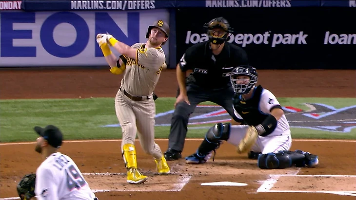 В первом иннинге Джейк Кроненуорт своим гранд-слэмом (12) отправил Хуана Сото с Манни Мачадо и Джошем Беллом в дом.Затем Ха Сенг Ким выбил дабл (22) и Трент Гришэм прибежал в дом.