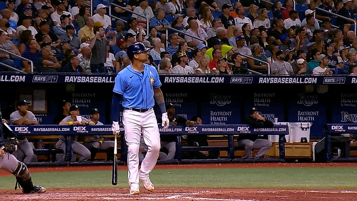 В 8 иннинге Ю Чанг выбил сингл,а Мануэль Маргот и Харольд Рамирес прибежали в дом.После ошибок питчера гостей Ю Чанг и Хосе Сири прибежали в дом.Затем Мануэль Маргот выбил сингл,а Кристиан Бетанкурт и Тэйлор Уоллс прибежали в дом.
