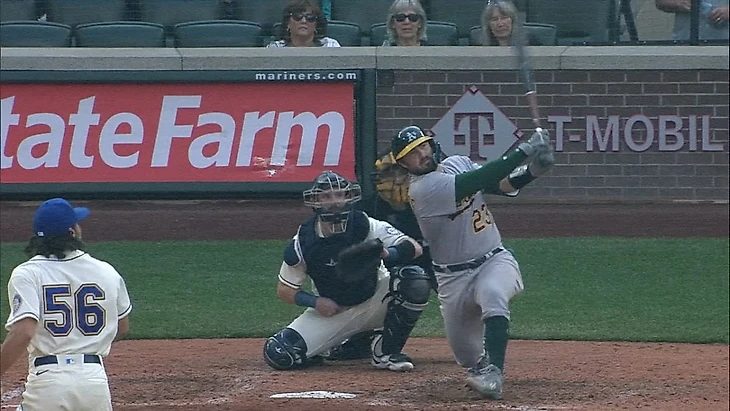 В 9 иннинге Сет Браун выбил сингл и Чад Пиндер прибежал в дом.Затем Ши Лангелирс своим хоум-раном (6) отправил Дермиса Гарсию и Сета Брауна в дом.