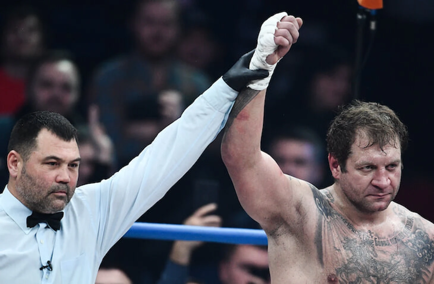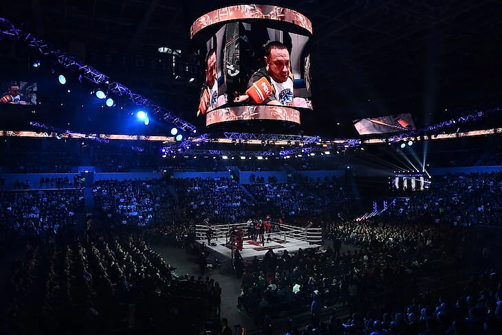 Но стадион все-таки заполнили, причем заранее, а не впритык к главному бою. Зря: в ринге было максимально уныло.