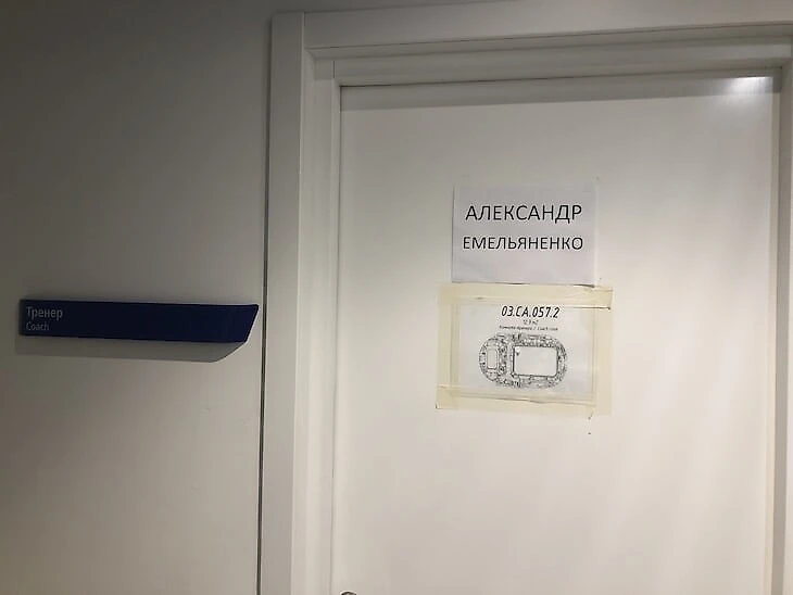 Емельяненко в это время вышел из раздевалки и ушел бить по лапам в более просторное место – соседний коридор за дверью, перед которой стоял охранник и никого не пускал.