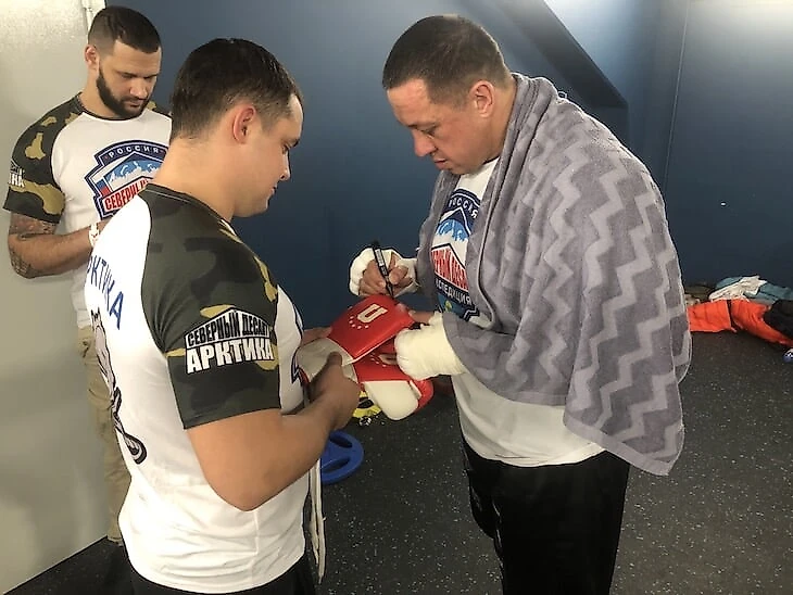 С Кокляевым была огромная команда. На арену подтянулась вся элита силового спорта: известный пауэрлифтер Алексей Серебряков и бывший обладатель абсолютного рекорда в жиме лежа Кирилл Сарычев. Такая концентрация людей далеко за 100 кг заставляла постоянно открывать дверь раздевалки, потому что там просто не хватало воздуха. В углу, кстати, поставили икону.