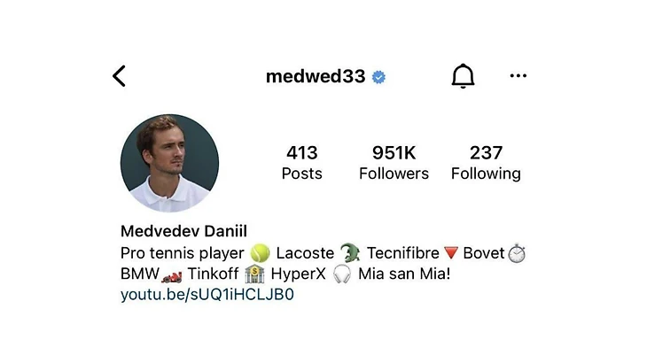Первая ракетка мира Дмитрий Медведев, убрал флаг России, который присутствовал на его профиле в инстаграмм