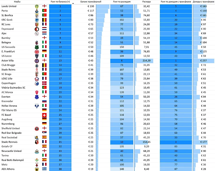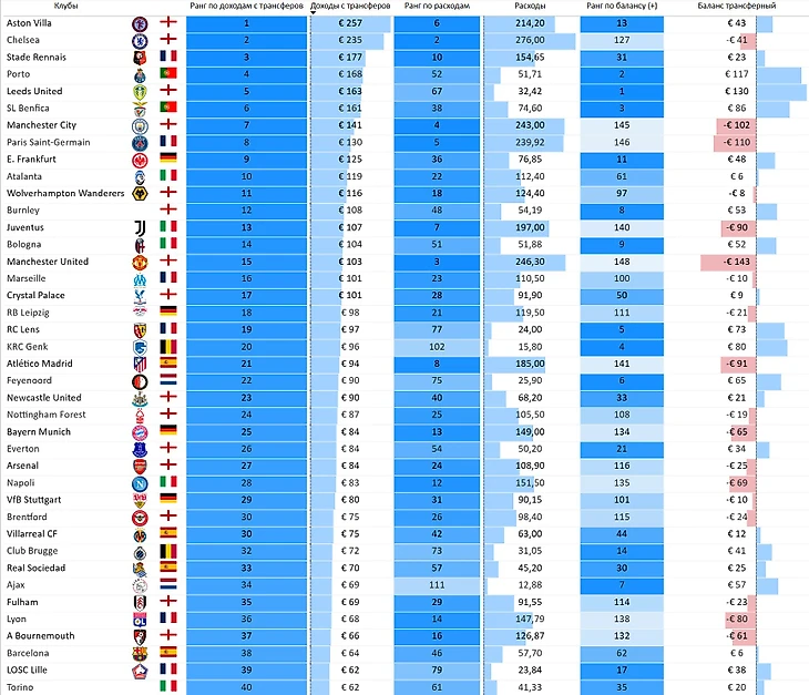 Рейтинг клубов по трансферным доходам, кто больше всех продает?