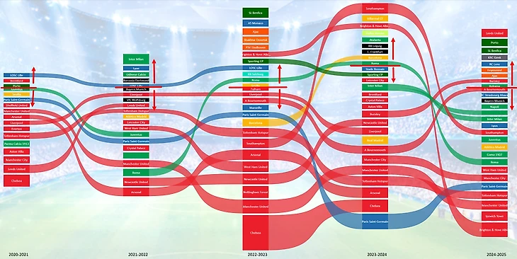 Кто больше всех потерял и заработал на трансферах? Итоги сезона-24/25 и пятилетний рейтинг