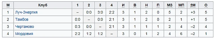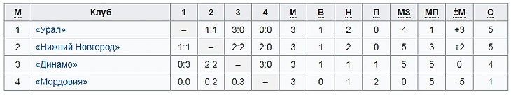 2012: Н-Новгород – Мордовия 2-0, Мордовия-Урал 0-0, Динамо Бр – Мордовия 3-0