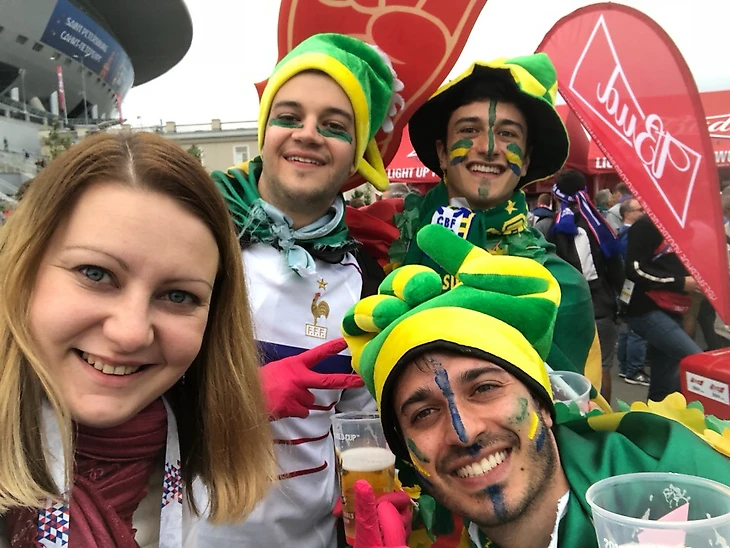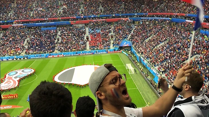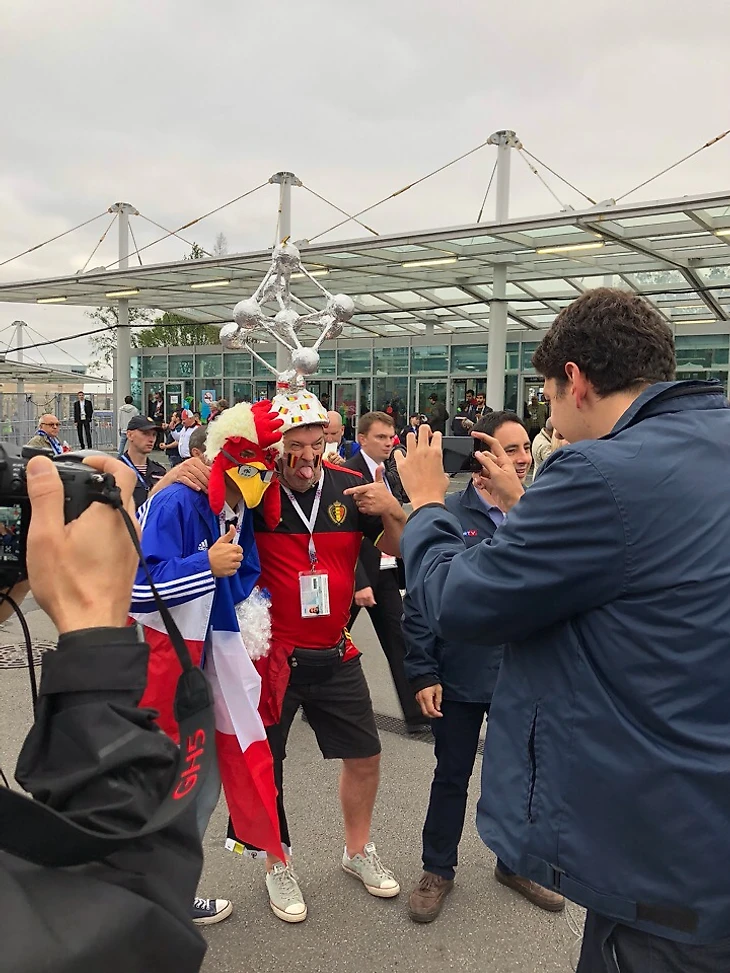 Всё это время, вплоть до последней фотографии (там непонятно, бразильские болельщики маскируются под французских или наоборот), было ощущение, что за Францию никто болеть не приехал. Все мои попутчики были либо бельгийски настроены, либо нейтральны. Тем больше было моё удивление от того, как, оказывается, могут болеть за своих французы.