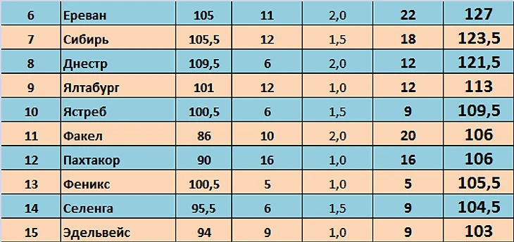 Эдельвейс с 50%-м результатом вошел в тройку.