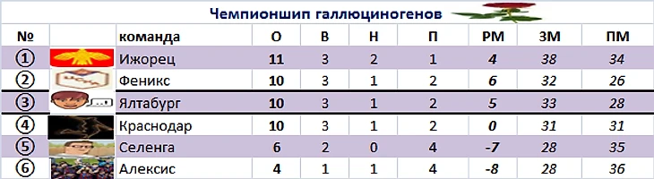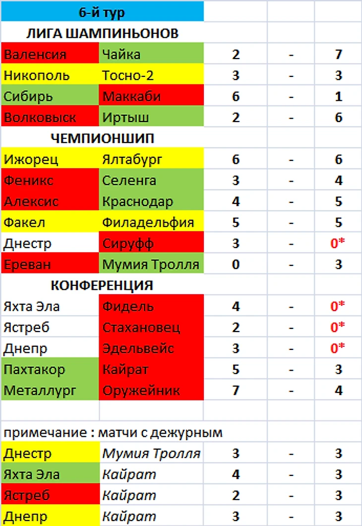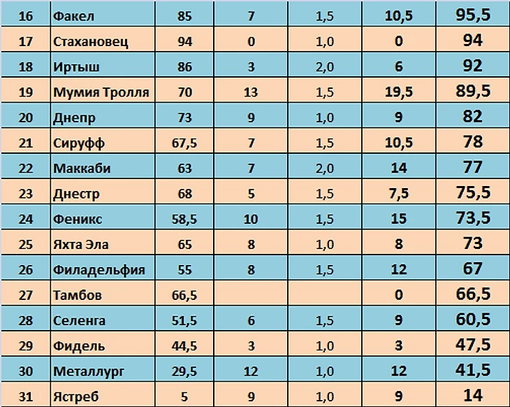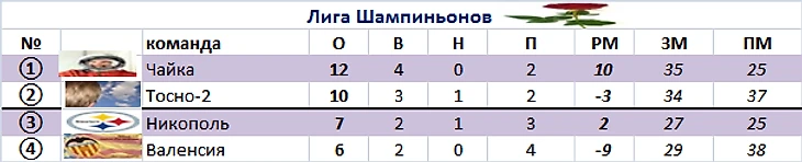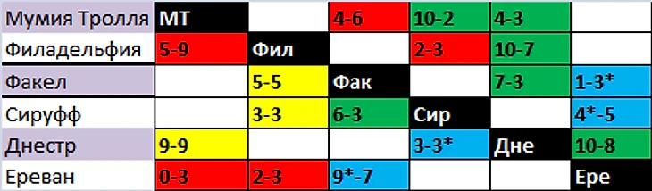 После 2-го цикла по-прежнему лидировал Тамбов, Валенсия и Сибирь делили 3-4-е места, но они ...дружно вылетели в Чемпионшип