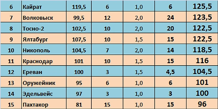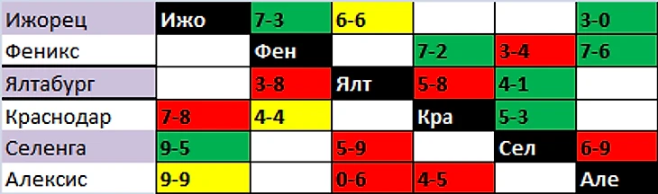 Селенга и Алексис поменялись местами. Правда, это уже не имело турнирного значения.