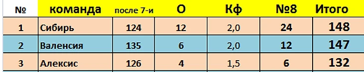 После 7-го цикла Валенсия лидировала, а Сибирь была 3-й (-11).