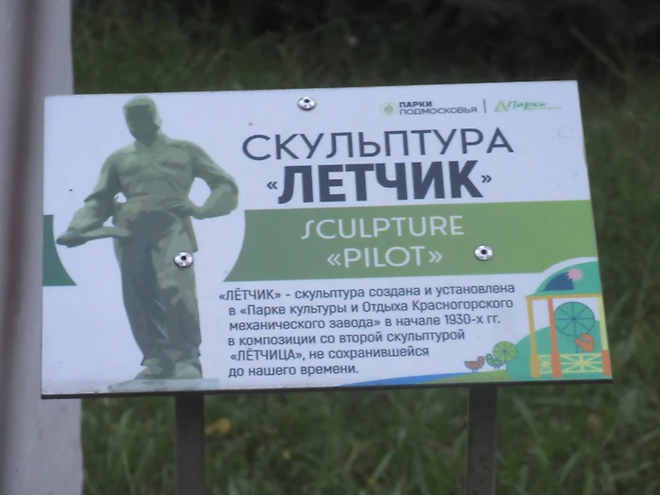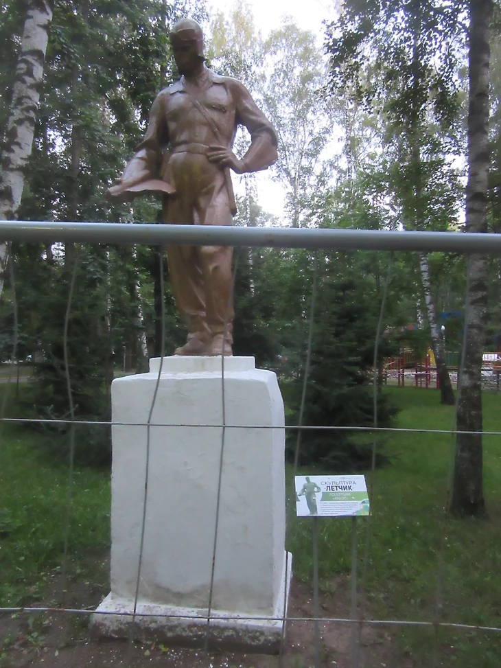 Сохранились некоторые «древние» скульптуры из 1930-х годов. Летчик потерял спутницу.