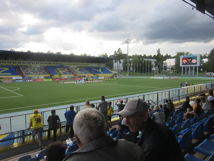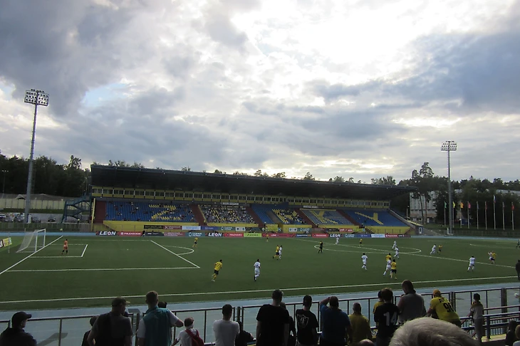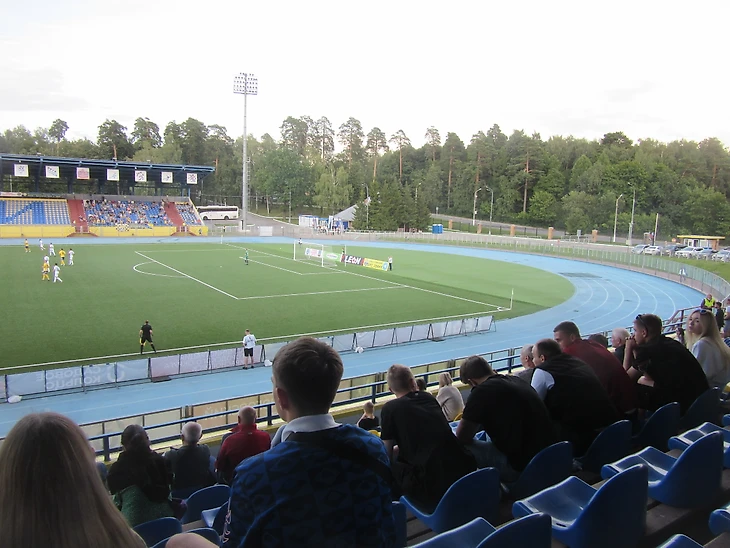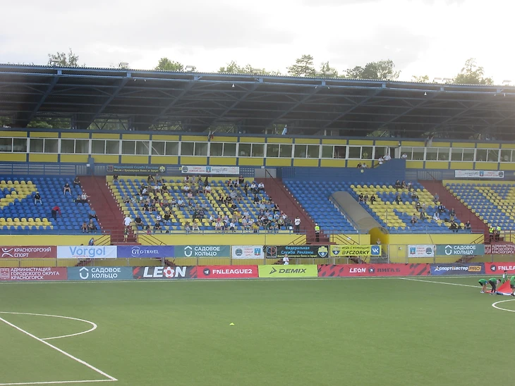 Стадион почти продолжение зеленой зоны. Сразу заметно наличие мест возле забора на случай закрытого матча или если в Кубке России приедет, например, московский «Спартак». Видимость замечательная.