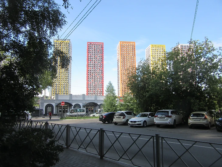 На выходе встречает креативный ЖК «Тетрис».