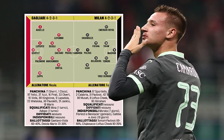 Да, на Сардинию приехал другой «Милан», совсем не тот который был в Мадриде. Пожалуй, главное событие этого матча, случилось ещё до его начала. После столкновения с Павловичем, с травмой головы в госпиталь уехал Альваро Мората. Учитывая проблемы Йовича с пахом, для его замены оставалось два варианта - Абрахам и Камарда. Опыт против молодости. Фонсека решил пойти по наиболее трудному и спорному пути. В стартовом составе с первых минут появился Камарда.