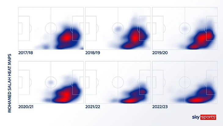 Тепловая карта Мо Салаха в «Ливерпуле» за каждый сезон