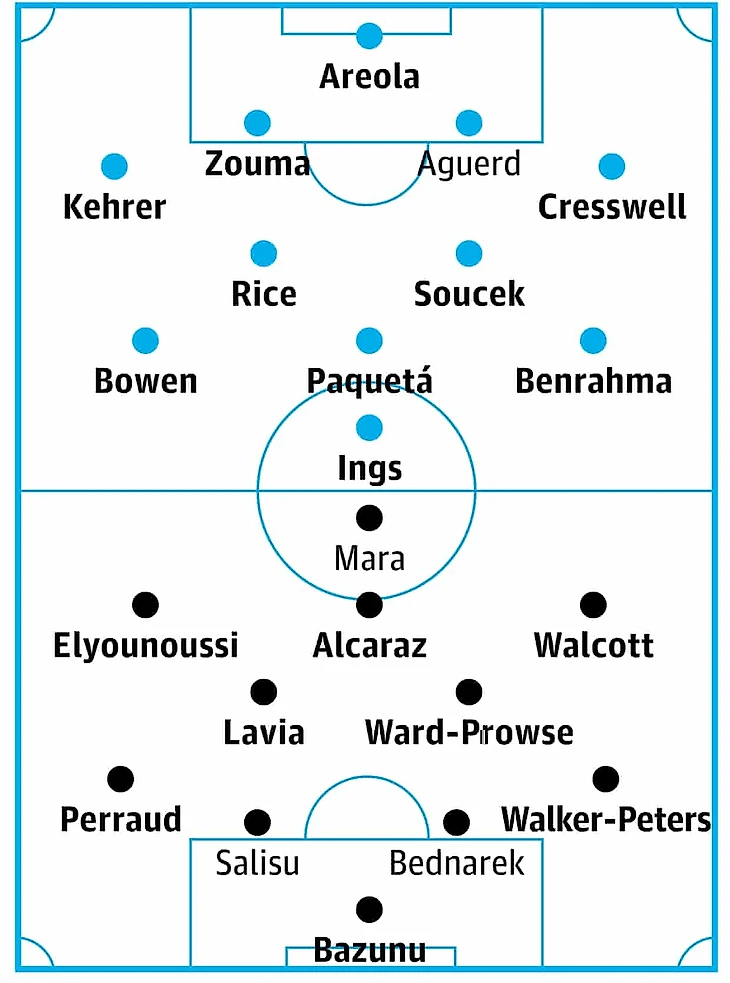 Ориентировочные составы на матч «Вест Хэм» - «Саутгемптон» по версии The Guardian: