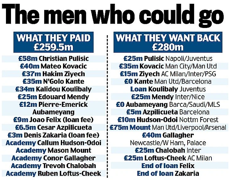 DailyMail опубликовал интересный материал, в котором называет 15 игроков, которые должны покинуть клуб этим летом. Также издание сравнивает цены этих игроков. Слева указаны сумма, за которые «Челси» подписывал этих футболистов, а справа – деньги, которые сможет выручить от расставания с ними!