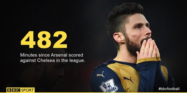 Если "Арсенал" не забьет в этом матче, то безголевая серия в премьер-лиге против "Челси" сравняется с аналогичной серией против "Ливерпуля", которая является самой длинной. Мерсисайдцам "Арсенал" не мог забить шесть матчей подряд в чемпионате с 1997 по 2000 года. Ворота "Челси" в премьер-лиги в противостоянии с "Арсеналом" оставались на замке последние пять игр подряд.