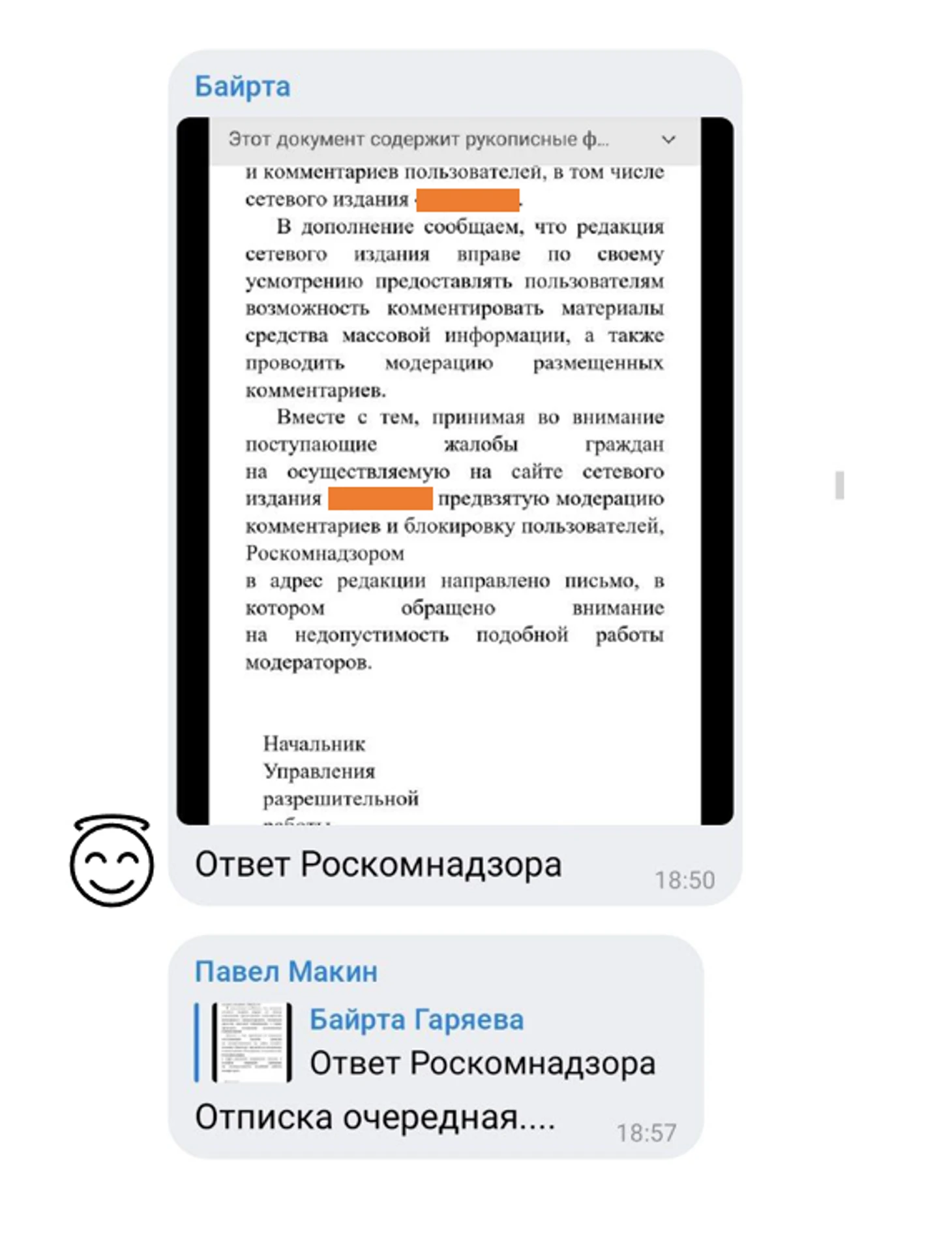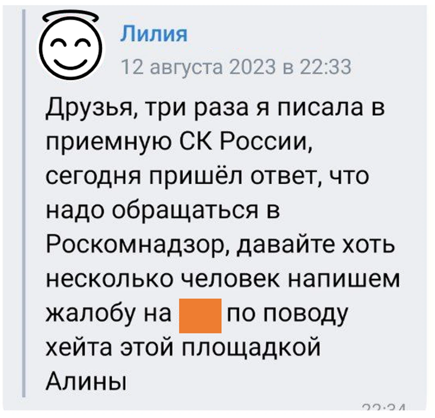 Когда Роскомандзор всё-таки ответил, «Воины света» были опечалены, но все же решили, что данная часть письма им подходит и они могут «припугнуть» редакцию данным отрывком и вот тогда-то уже их кумиршу перестанут необоснованно критиковать!