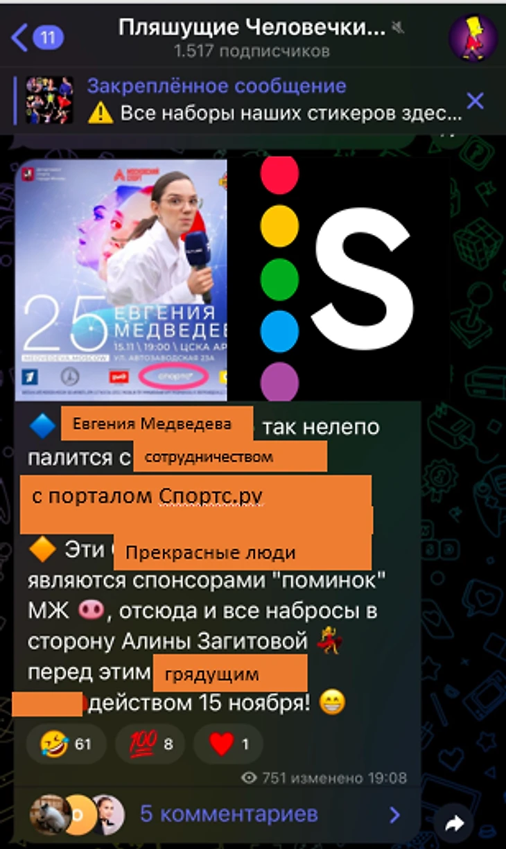 Дополнительным обстоятельством для возрастания ненависти данного ресурса стала поддержка Евгении Медведевой на ее шоу.