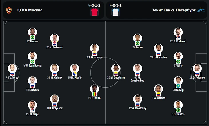 «ЦСКА» постепенно сумели подвести Дивеева, чтобы он смог отыграть 90 минут самой важной на данный момент игры этого сезона. Тороп вместо Акинфеева в кубке так же уже никого не удивляет. Единственной интригой был выбор пары нападающих, но и они были немного прогнозируемы с учётом игры чемпионата, где больше часа со старта отыграли Глебов и Мусаев.