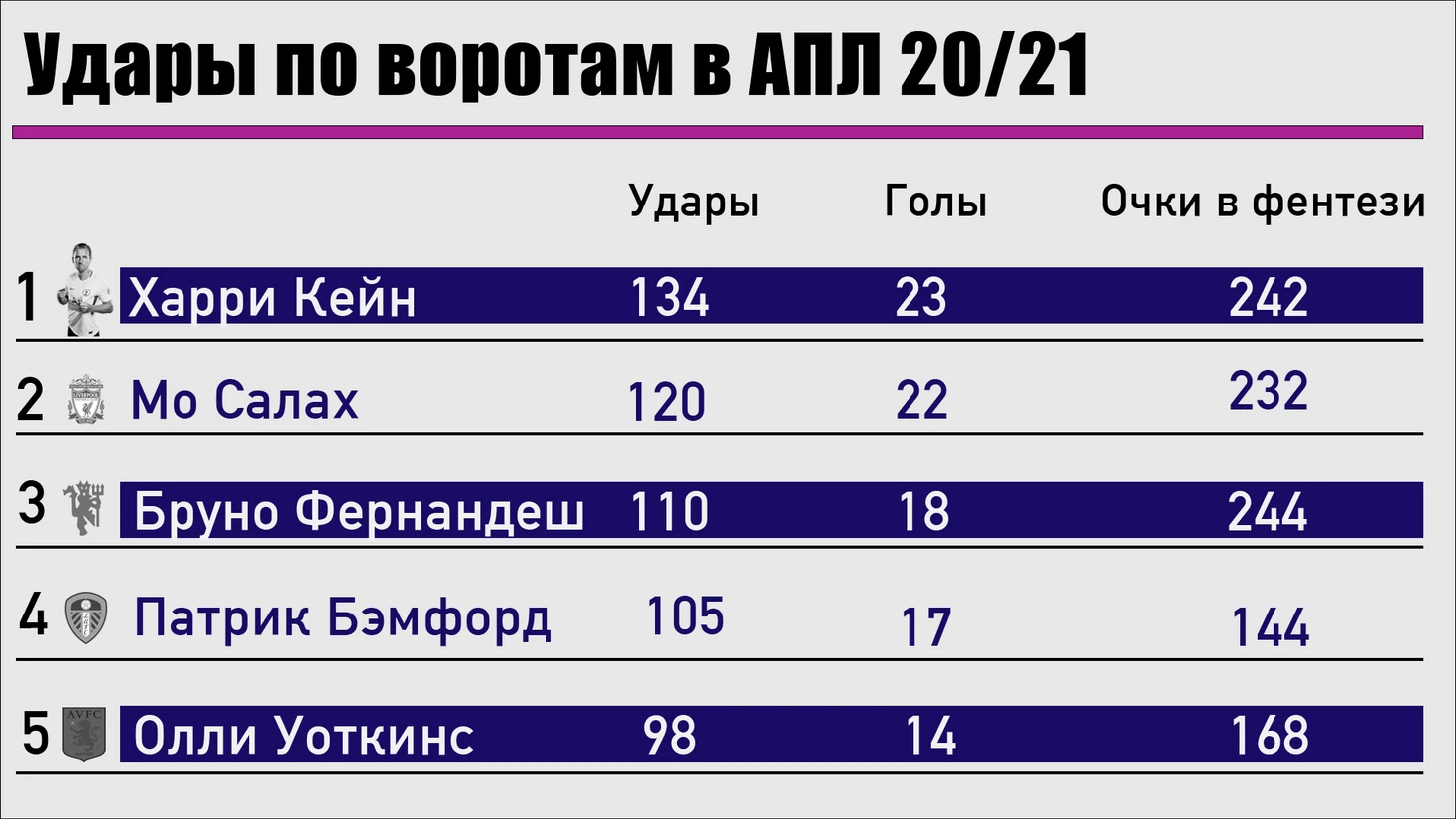 Логика проста – чем больше игрок бьет по воротам, тем лучше. В предыдущем сезоне все топ-5 футболистов по количеству нанесенных ударов были самыми востребованными игроками в фентези.