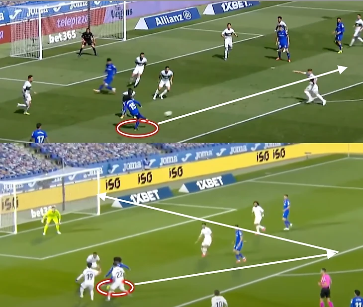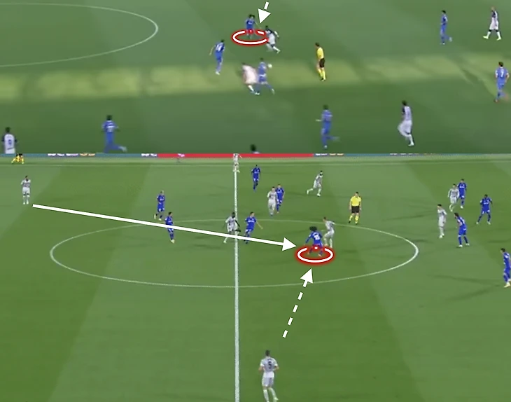 Как уже отмечалось, «Хетафе» создавал капкан в центре поля: открывали линии паса, а потом зажимали со всех сторон. Кукурелья делал это очень быстро: