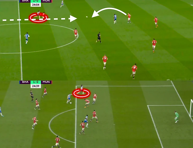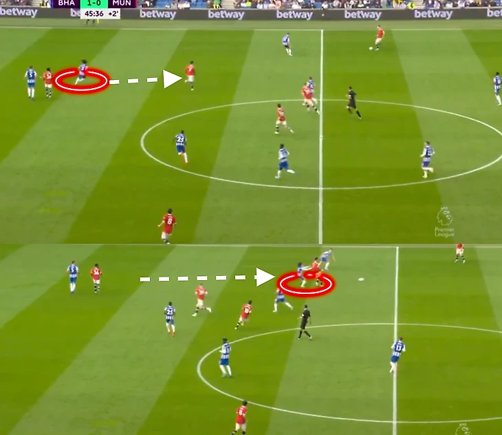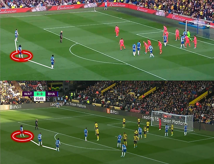 Однако его свобода в подключениях была ограничена. «Брайтон» активно атаковал полуфланги, но делали это полузащитники (за редкими исключениями – центральные защитники), поэтому от Кукурельи требовались открывания строго по флангу.