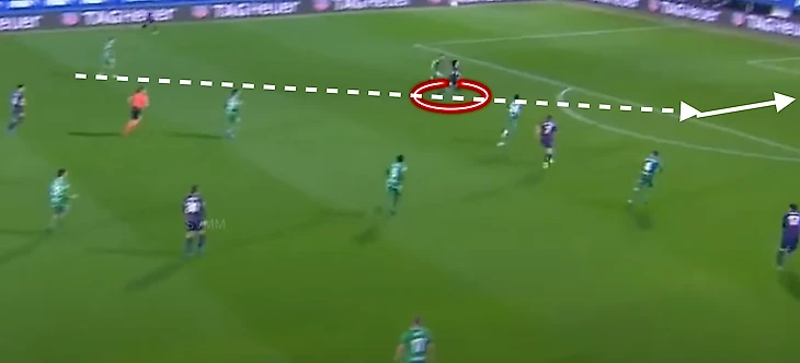 Выделяется также качественной доставкой с фланга, поскольку умеет находить сложные варианты в штрафной. Пусть здесь и не засчитали ассист, атака завершилась голом.