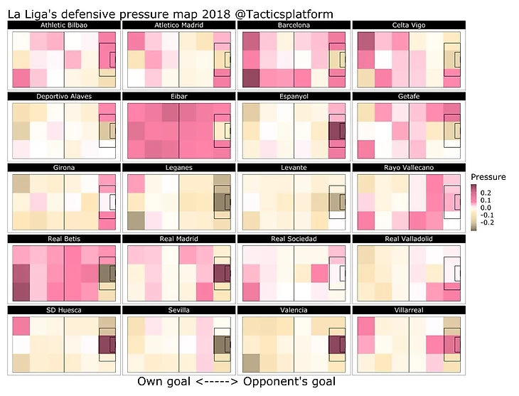 Карта прессинг-действий, которая демонстрирует уникальность «Эйбара»-2018/19: