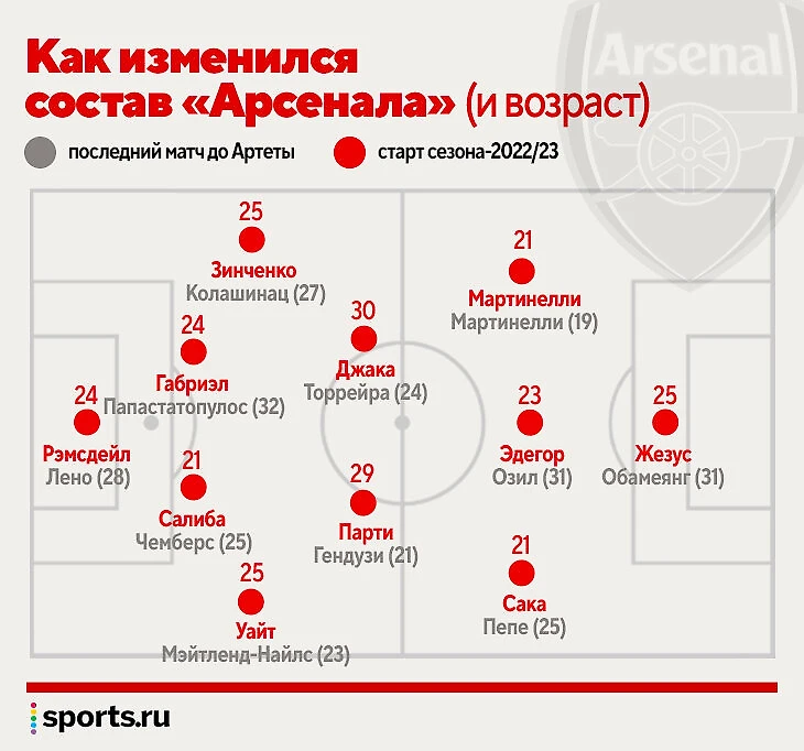 Средний возраст состава «Арсенала»-2022/23 – 24,6 года. Это самое низкое значение в лиге. Так сложилось и благодаря подписаниям, и благодаря игрокам из академии. Некоторые из них дебютировали на «Эмирейтс» при Эмери – в сложное для «Арсенала» время, когда клуб находился в тупике.