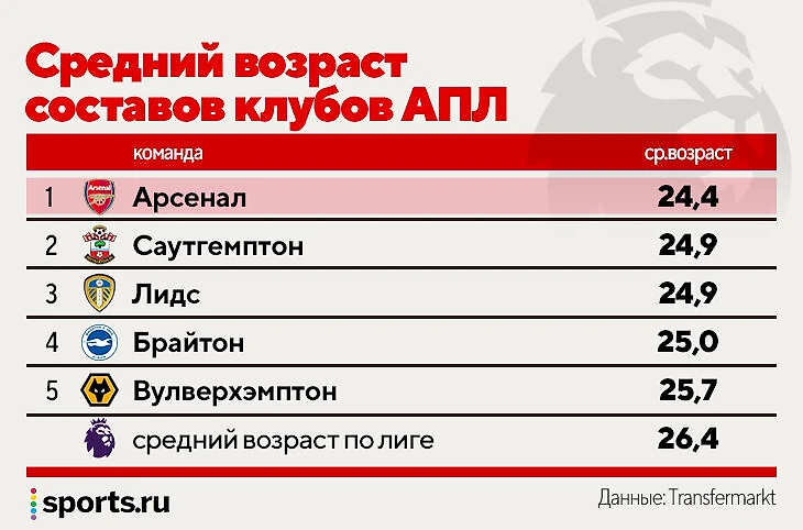 На вершину таблицы АПЛ-2022/23 взобралась самая молодая команда, которую тренирует самый молодой тренер в лиге. С составом, средний возраст которого 24,4 года, «Арсенал» обходит «Сити» и «Ливерпуль».