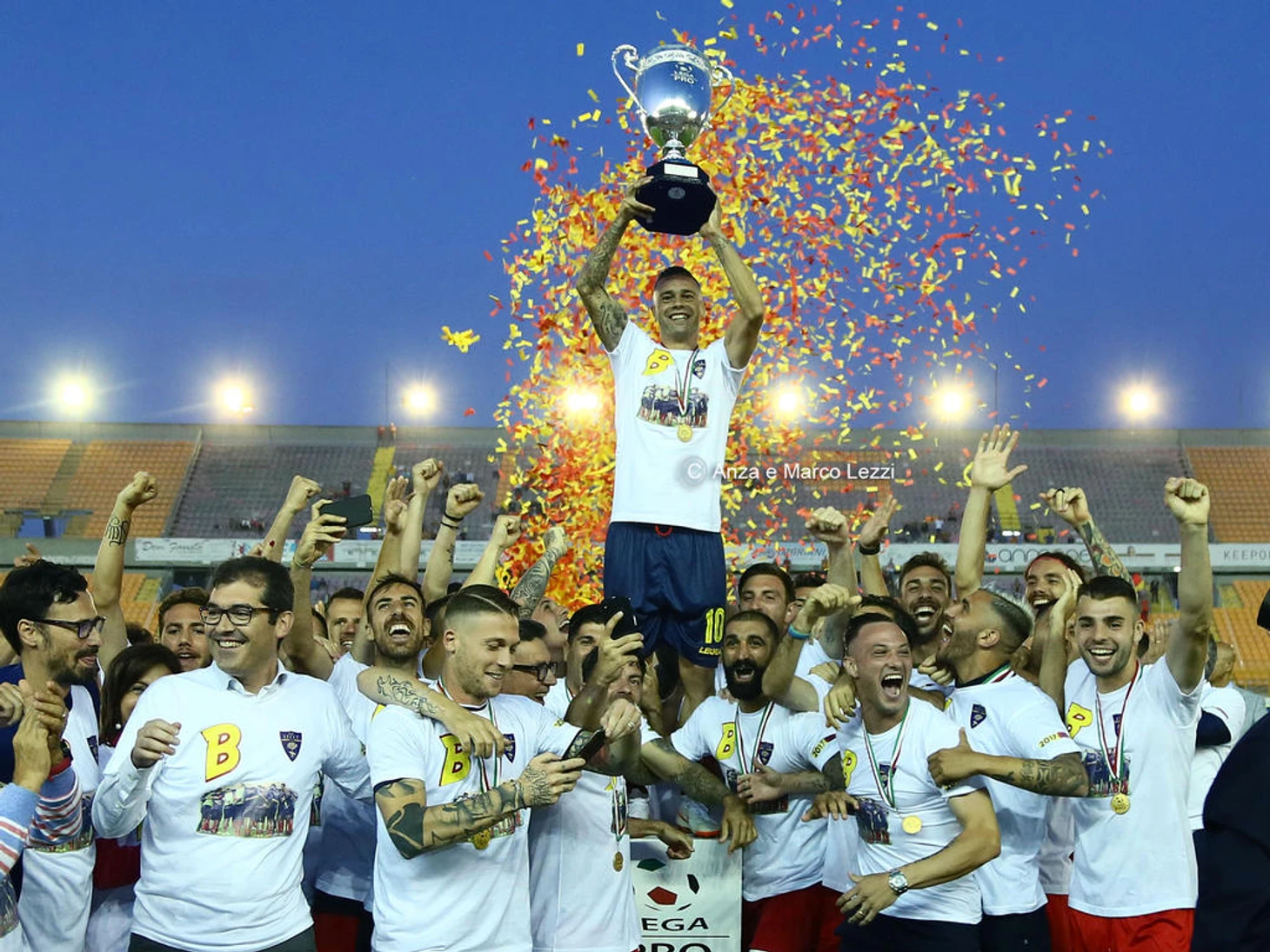 Так в 37 туре чемпионата Италии в третьей по силе лиги, решалась судьба целого города, живущего футболом на полную катушку. На улицах которого во время матча нельзя было найти ни единого прохожего. Региона Апулии, а именно Лечче, тиффози одноименного клуба просто сошли с ума от счастья по случаю возвращения своего родного клуба в кагорту профессиональных клубов Италии. Лечче вышел в серию Б. Интересно, что именно мечтой о возвращении джаллоросси, начинался наш блог. Порадуемся вместе Перчиками их победе и возвращению. Ведь для многих этот самобытный маленький клуб является своеобразным символом Серии А двухтысячных годов. Клуб который дал Итальянскому футболу не мало добротных игроков и всегда показывал яркий футбол не имея на то больших денег.